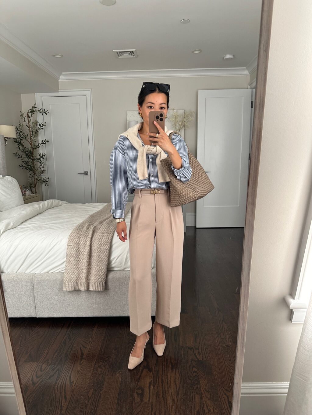 I swapped out the white linen shorts for quite a lot of deeper impartial tones in the same shade household. These Aritzia cropped easy pants are superb for those who’re petite and work in a company workplace!