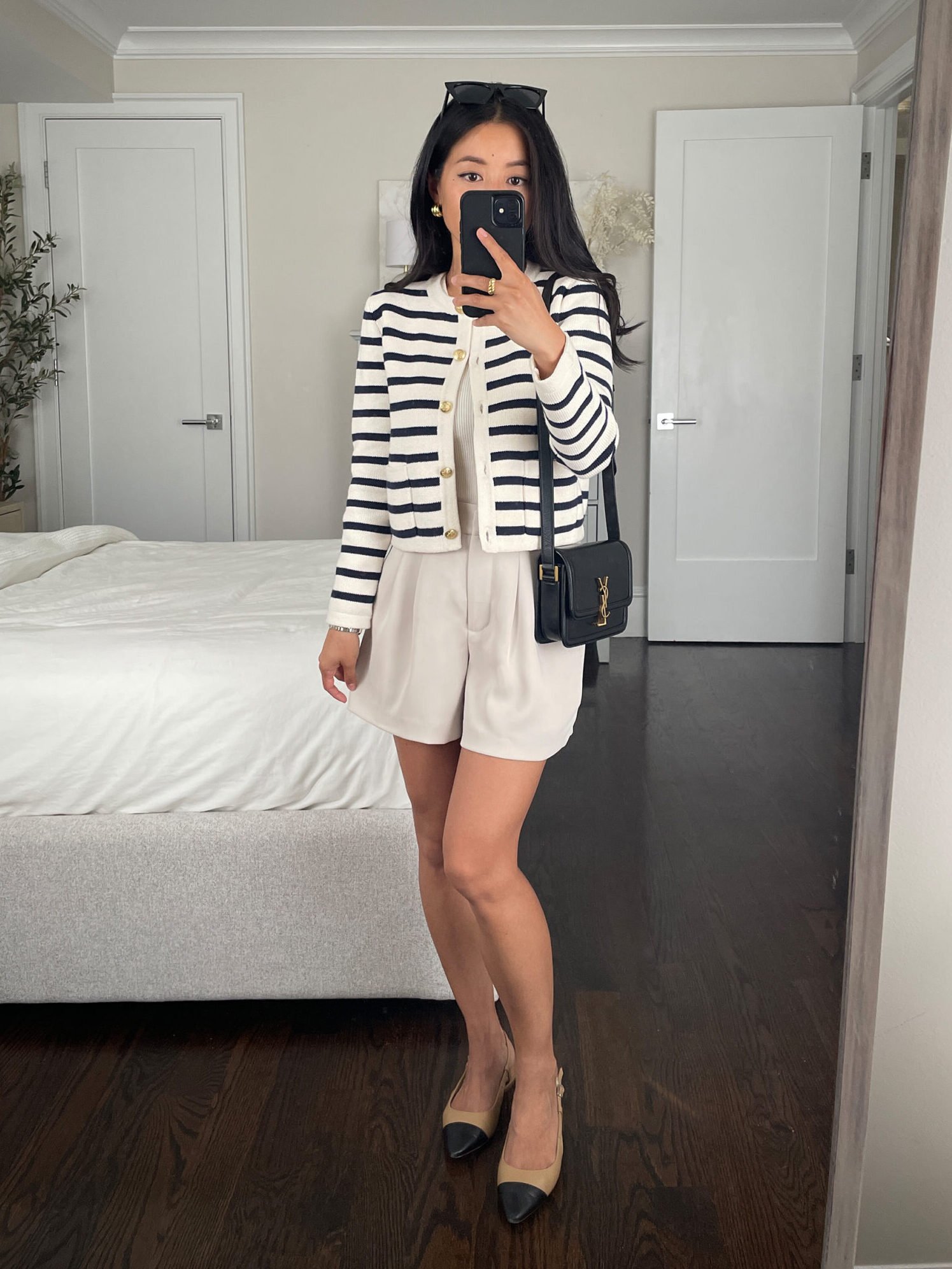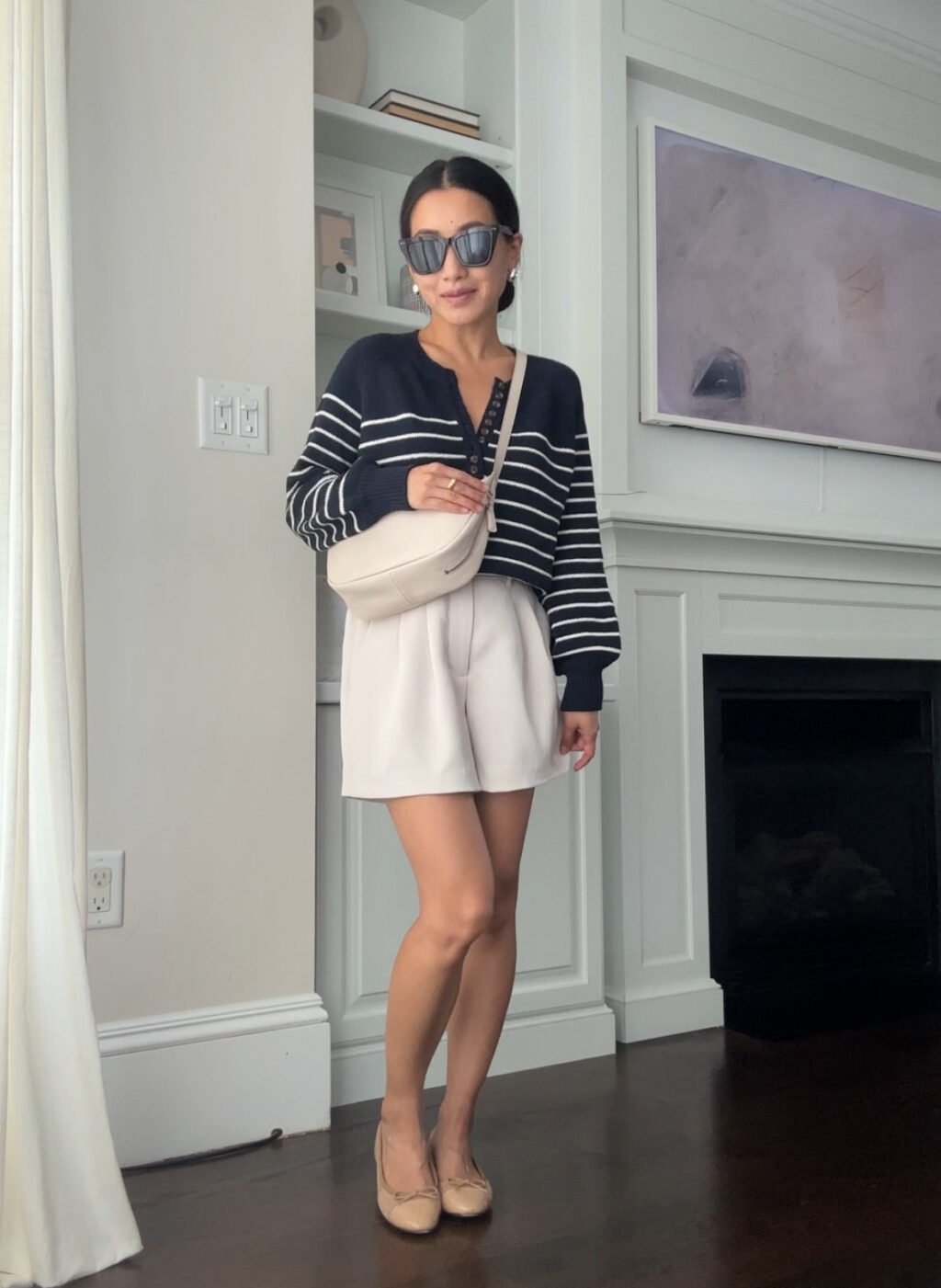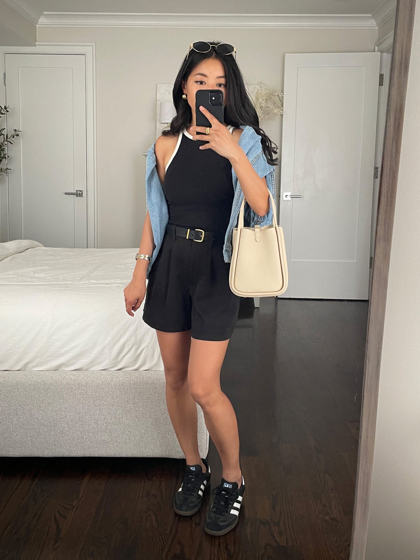 Beneath are a number of methods I’ve been carrying these shorts, together with some layered seems to be for cooler summer time evenings and for transitioning into Fall!