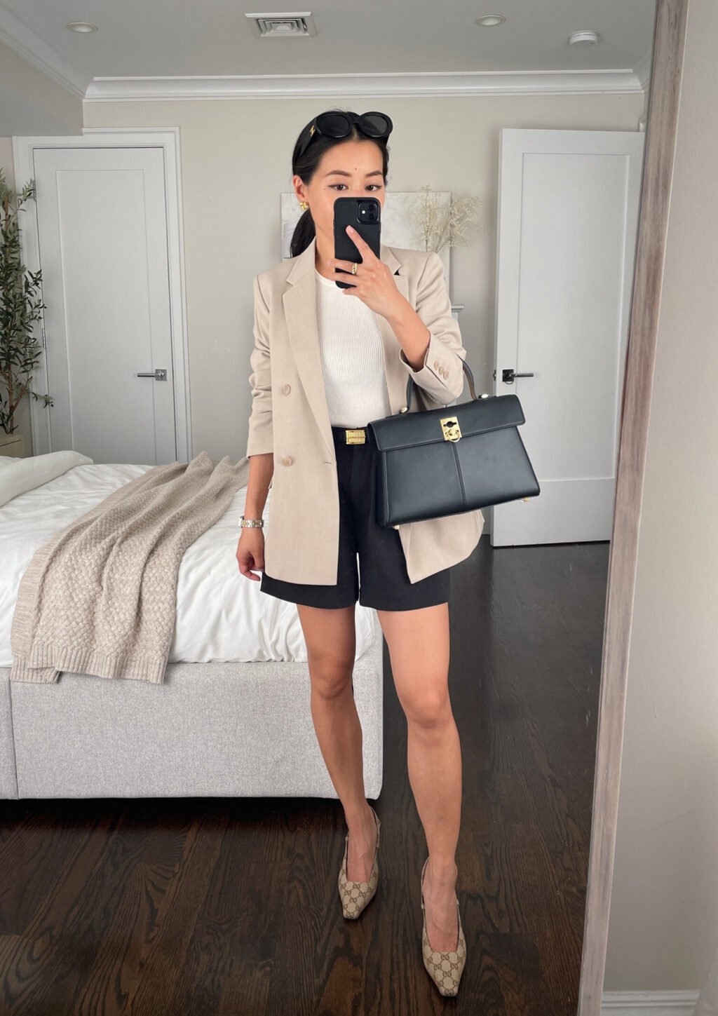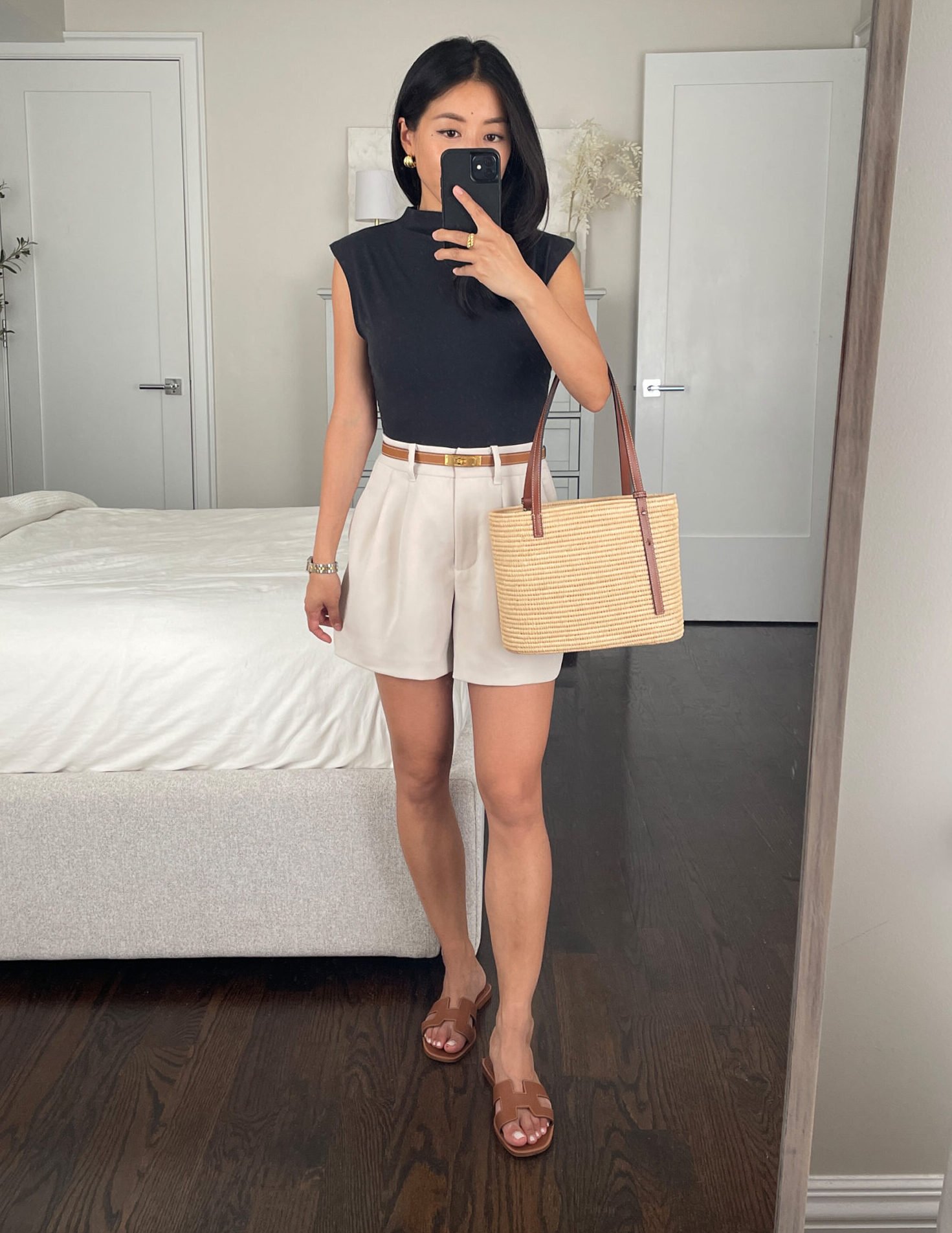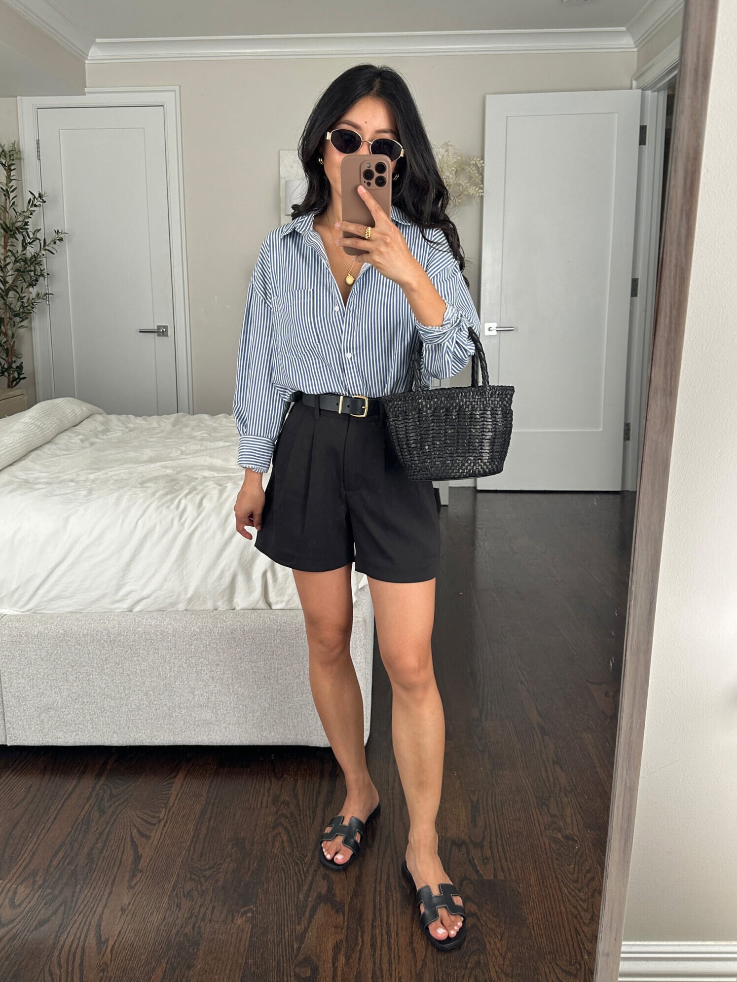 This final one is by far my most-worn combo, since I’ve been making an attempt to put on extra lengthy sleeved outfits (for solar safety) that also feels cool and breathable in the summertime warmth! I simply love the juxtaposition of the outsized, laid again menswear model shirt with a extra tailor-made quick cinched by a waist belt.