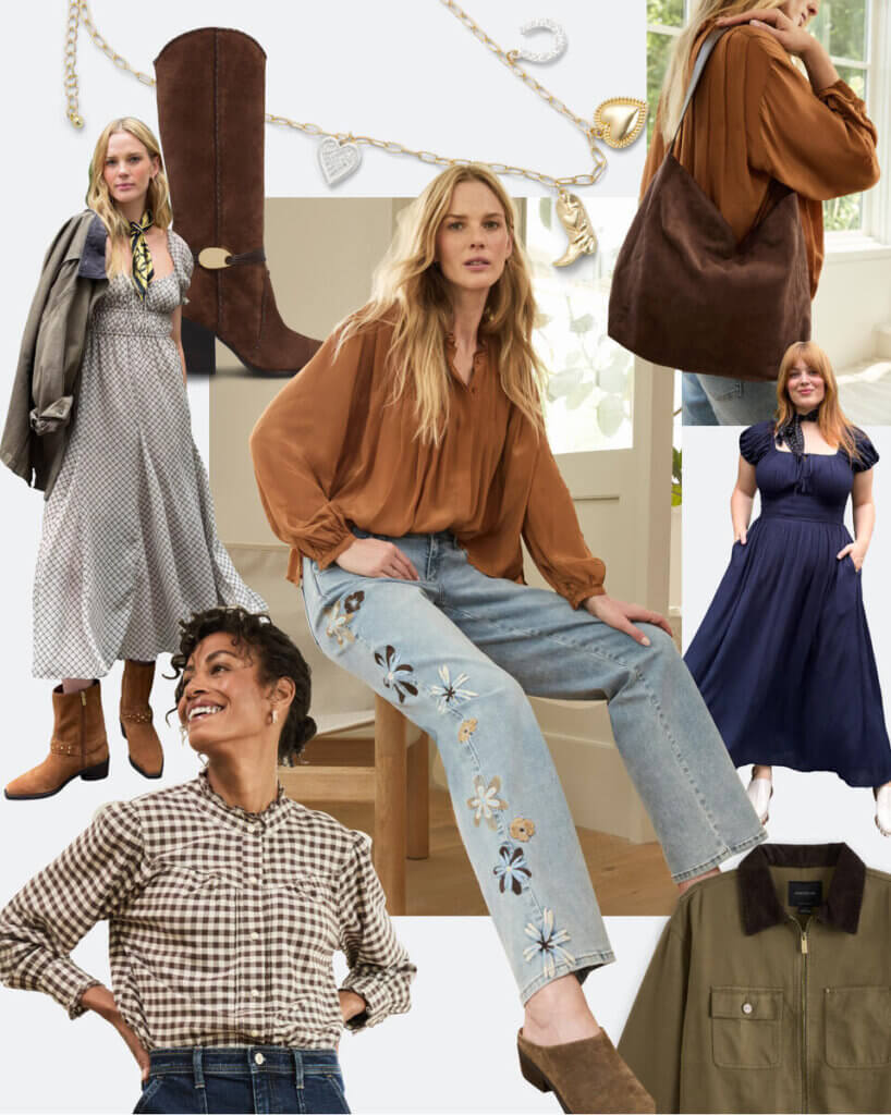Boho cottagecore and western put on present no indicators of stopping this fall—however now they’re working collectively. “This one is all about steadiness,” Jenny says. “We’re seeing romantic silhouettes grounded with heritage textures and western touches.”
