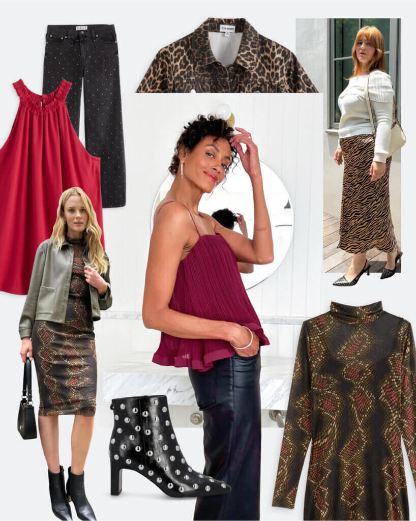 The development additionally requires components of edge, like leopard print, plus daring colours. Assume: cherry, teal, deep rust and black (after all). Stylist Michelle’s fave? “A brilliant-stretchy mesh costume in a daring animal or summary print makes an prompt assertion and doesn’t sacrifice consolation. Double win.”