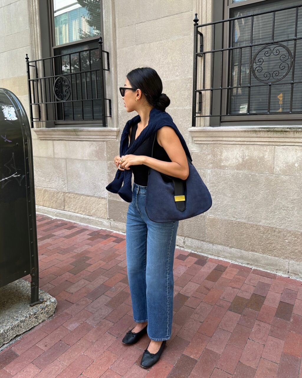 This can be a variation on outfit #3, besides with fundamental impartial colours and the sweater tied over the shoulders on a hotter afternoon. If you happen to don’t like a protracted jean with flats in concern of them dragging on the bottom, these are a pleasant cropped choice which can be just a bit wider than straight denims. You possibly can see my evaluate and information right here for the J.Crew Slim Huge denims.