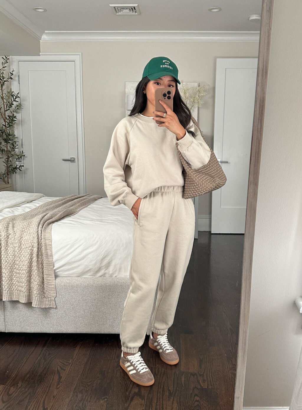 To make a sweats set really feel much less frumpy, don’t overlook particulars just like the footwear and bag. I might go for a trendy pair of sneakers over health club footwear and added a pop of coloration right here with my cap (a memento from Monoprix, which is just like the Goal of France).