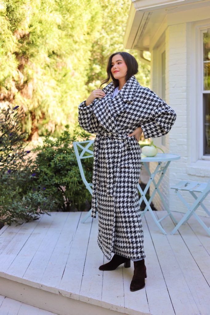 How gorgeous is this houndstooth coat for fall? I really like the sample and outsized match! This coat and this coat are additionally show-stopping outerwear choices for the cooler months.