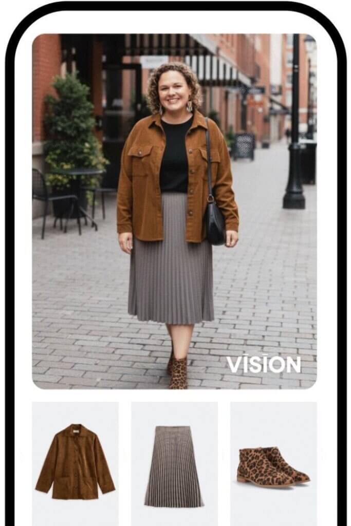 “We consider looking for garments ought to be simple and enjoyable, and that everybody ought to really feel assured in what they put on,” says Tony Bacos, our Chief Product and Expertise Officer. “Imaginative and prescient delivers on each, offering first-of-its-kind private model visualization and inspiration. It’s a wholly new method to model discovery, not like any of the present ‘digital attempt on’ experiences that require customers to do all of the work.”