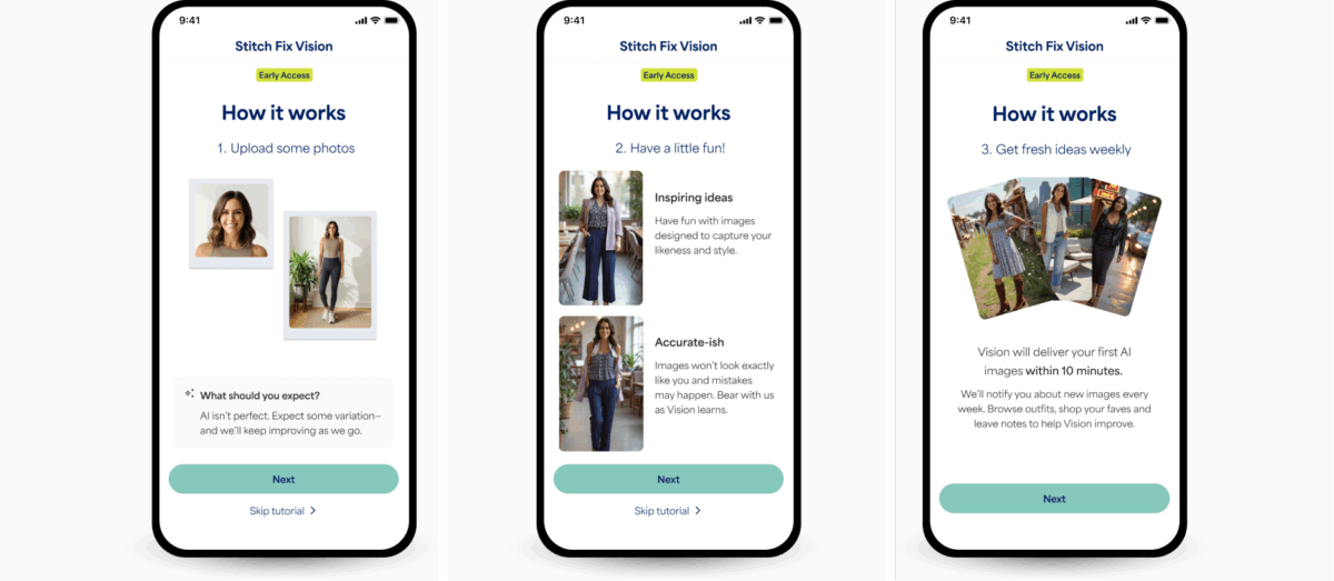 Sew Repair Imaginative and prescient makes use of AI to generate customized photographs of “your self” styled within the newest seems to be and tendencies. We’re in a position to do that by leveraging our proprietary algorithms and significant shopper knowledge, mixed with the experience of our Stylists. Making our very personal AI outfit generator tailor-made to all of your distinctive preferences.