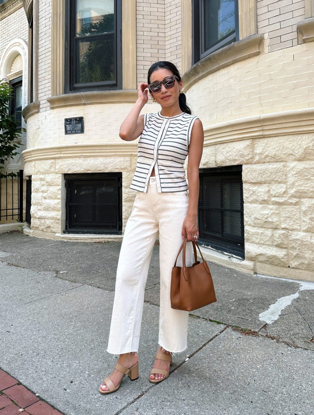• Linen vest – This suits somewhat massive on me however is so cute, I wished to share for others. I like the extra female scoop neckline. Put on with denim or coordinating linen shorts.