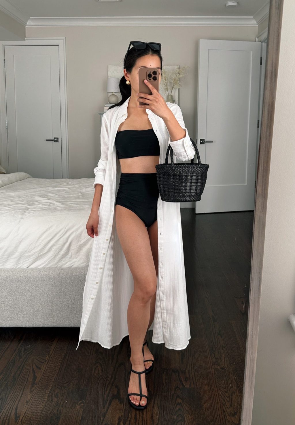 • Lengthy sleeve maxi cowl up – Wore this all week on vaca for somewhat further protection from the solar, and in addition belted as a canopy up gown (see right here). It is a semi-sheer looser match lengthy shirt, and doesn’t have any waist definition to it.