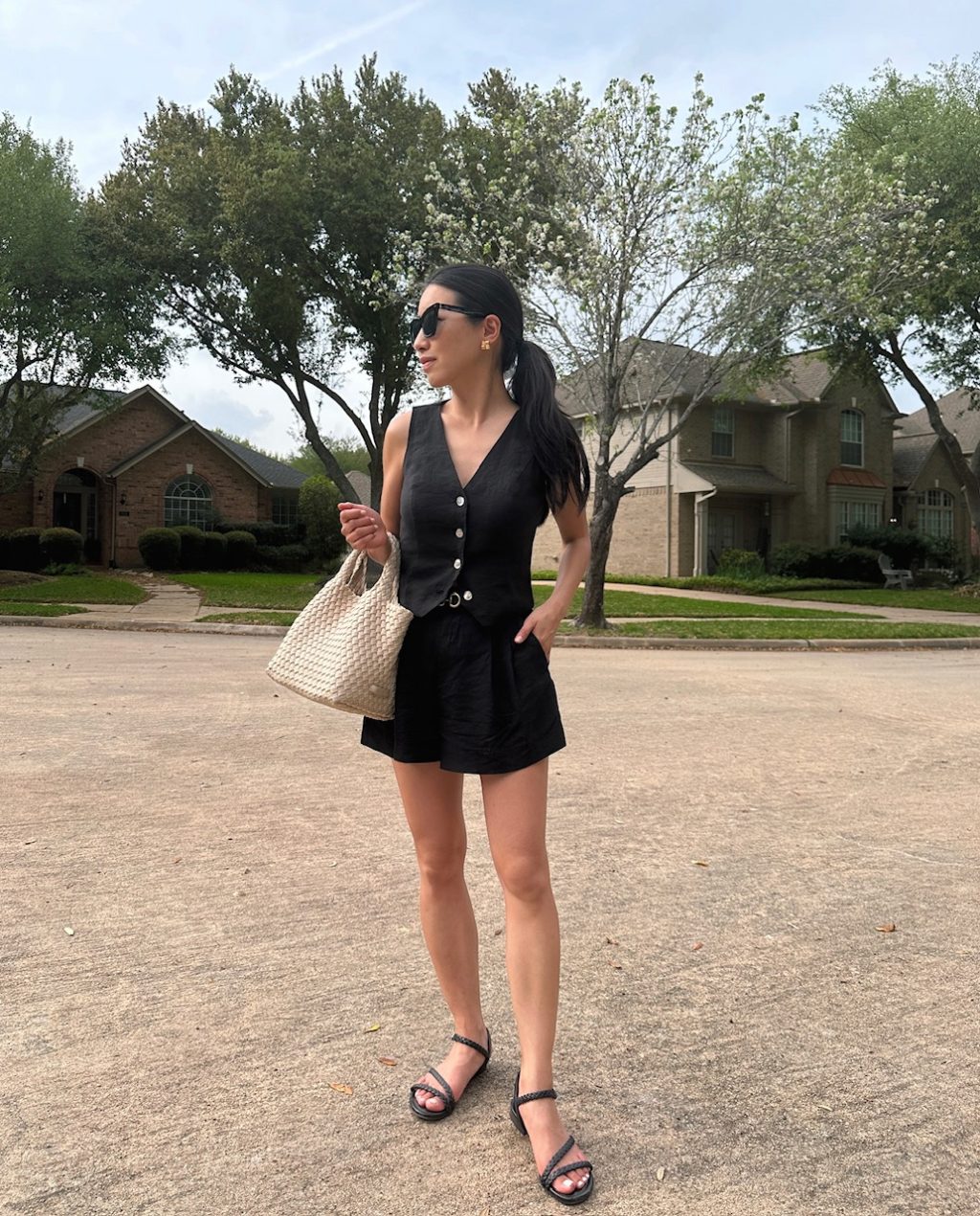 It is a thicker weight, structured sweater jacket that’s tremendous versatile – it’s a wonderful earn a living from home piece, a handy layer to maintain on the chilly AC’d workplace, and likewise nice for journey thrown on over leggings & sneakers. I like to recommend steaming out the creases earlier than sporting to assist it dangle higher!