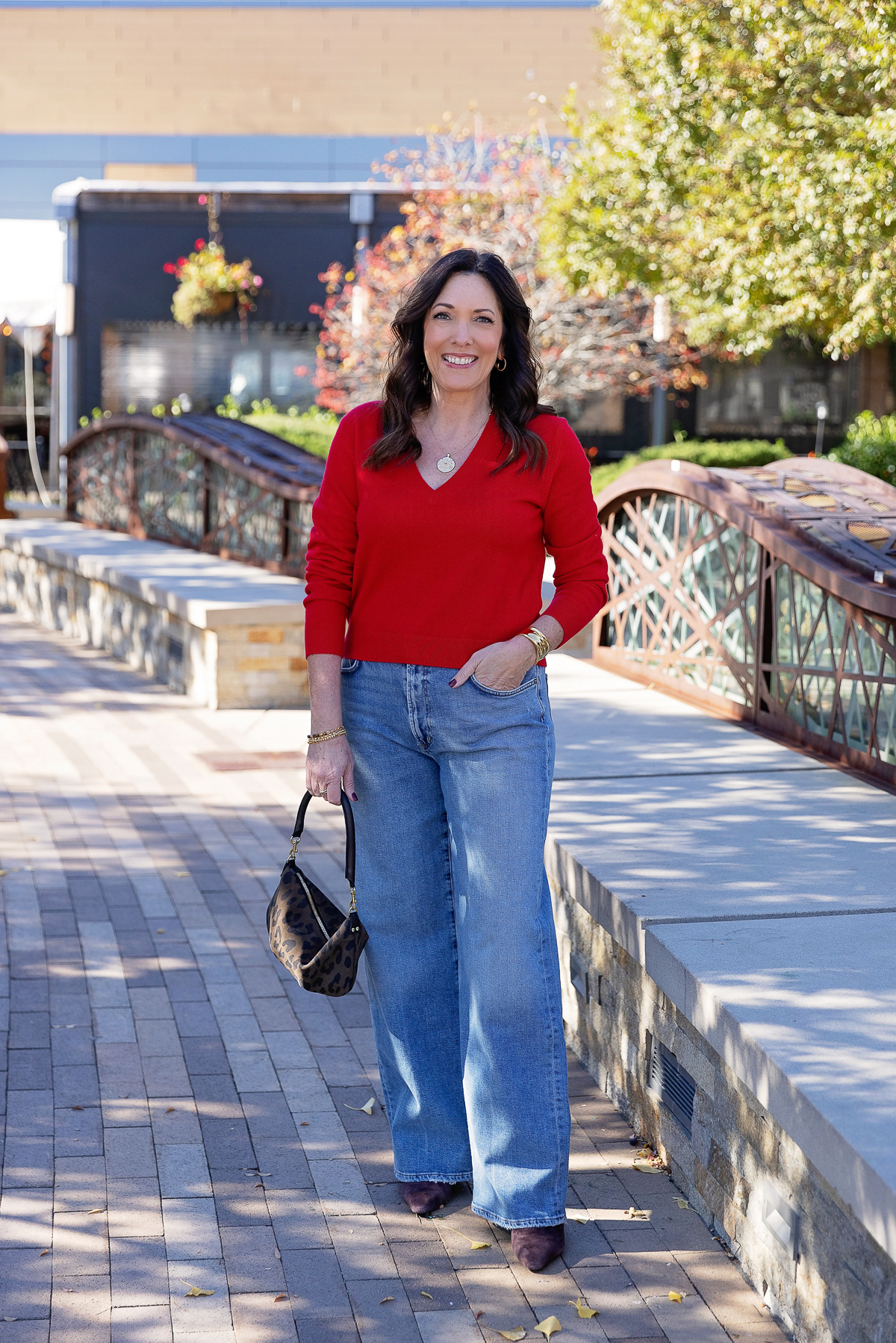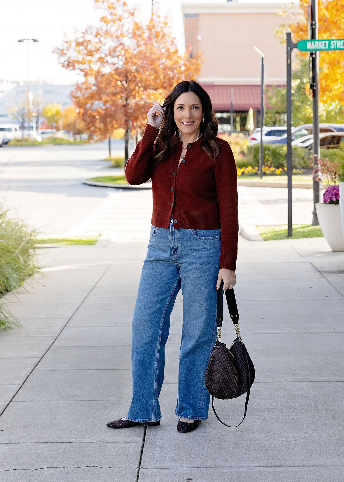 Regardless that the Abercrombie 90s Relaxed Jean didn’t find yourself being the very best match for me, I feel this outfit exhibits how properly straight-leg denims can pair with Mary Jane flats. The smooth, structured form of the shoe contrasts properly with the relaxed leg, retaining the general look polished relatively than sloppy. I saved the remainder of the outfit smooth and traditional with a cashmere cardigan and a stylish woven leather-based bag.