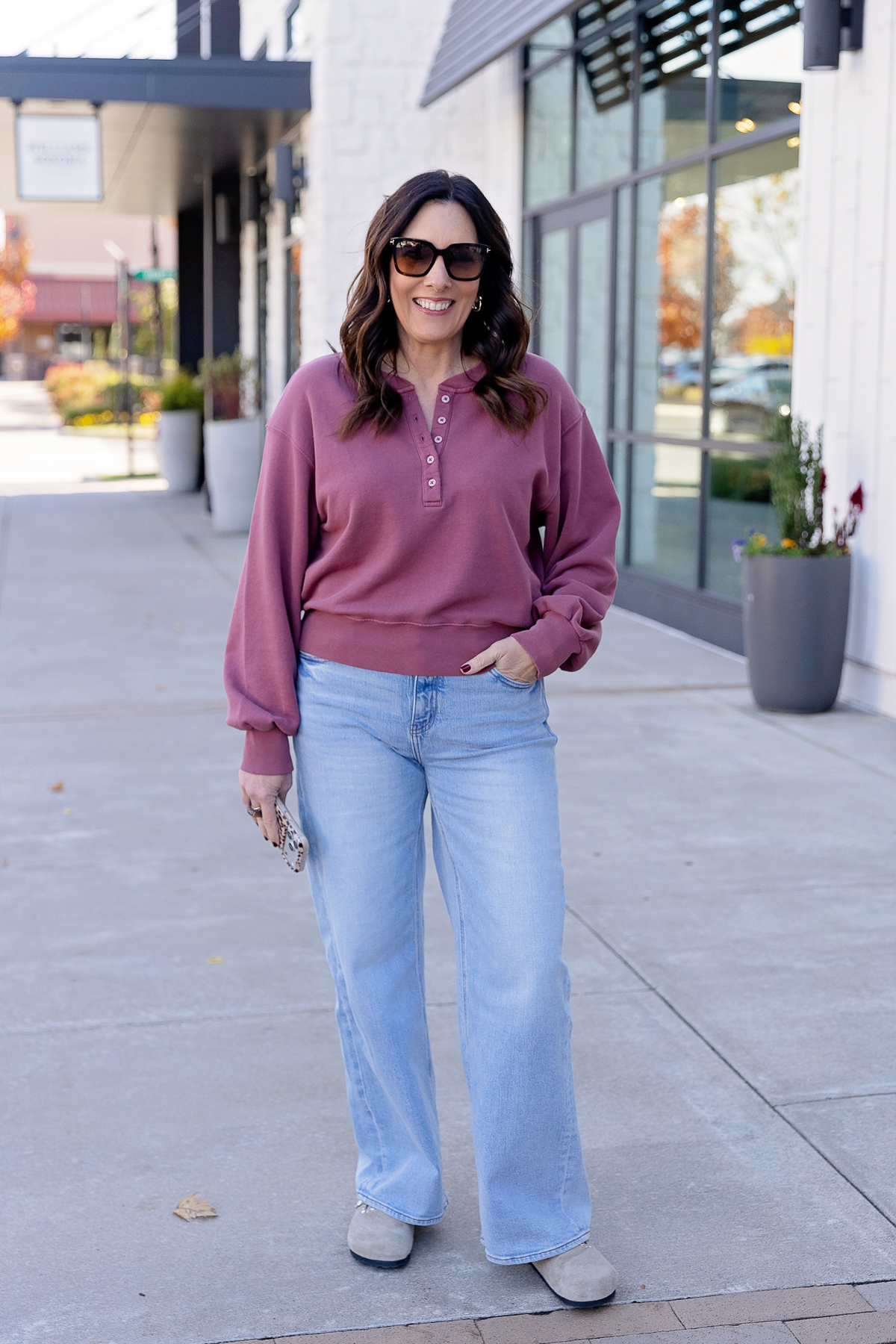 I saved this look informal and comfortable with a washed-red henley pullover. It’s the form of easy, on a regular basis outfit I attain for after I need to really feel comfy however nonetheless look put-together.