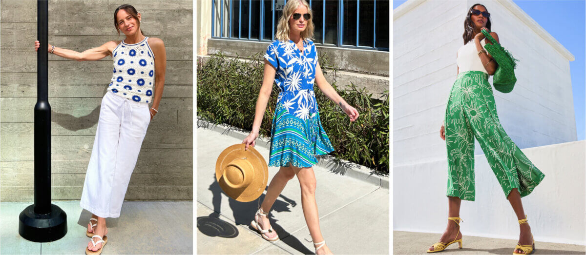 Even if you happen to don’t have journey plans, you may nonetheless costume such as you do. “Assume resort-wear meets on a regular basis informal,” says Stylist Michelle. High traits for this summer time embody all the daring colours. We’re speaking citrusy orange, ocean blue, sunny yellow and jungle inexperienced. Michelle provides, “For bonus factors, put on these daring colours in playful prints! Tropical florals and geometric patterns are the vibe.”
