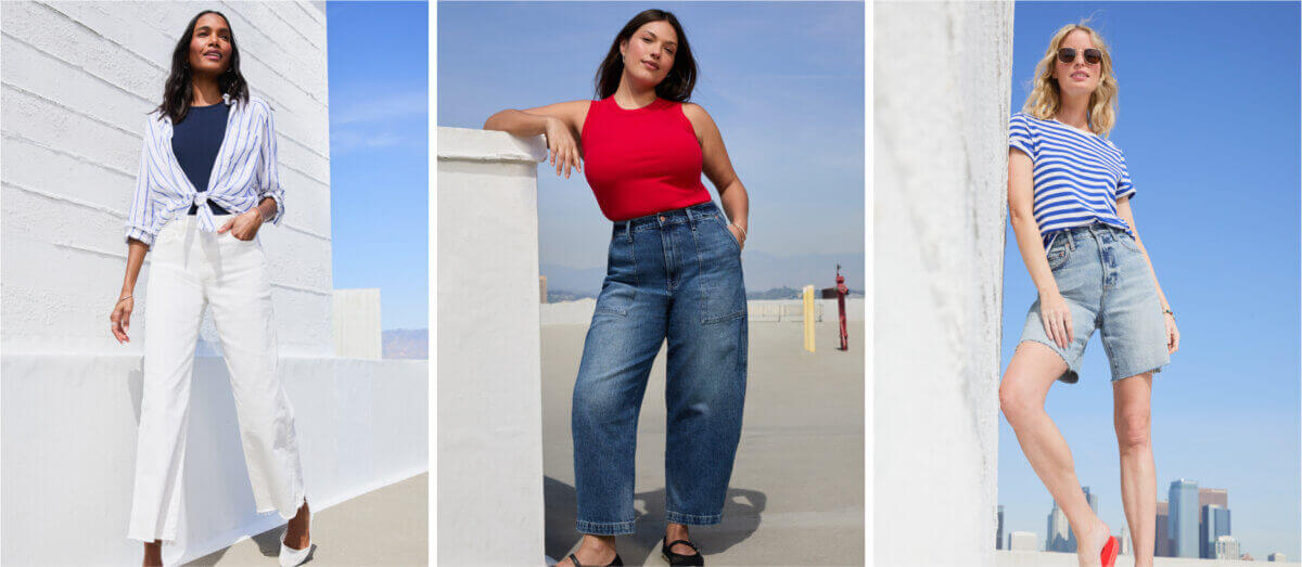 The simplest summer time components: denims + tee + sandals. The match and magnificence is what takes this tried-and-true combo up a notch. Model a pair of barrel-leg denims with a ribbed tank and add your fave sandals. Tip: When making an attempt out a brand new denim form (like barrel leg), maintain the remainder of your outfit fitted or tucked-in for steadiness. One other fave summer time denim uniform: seize a pair of relaxed shorts, a striped tee and pop-of-color sandals.